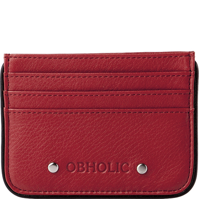 情人節推薦-瘋狂推薦momo購物-【OBHOLIC】義大利軟牛皮革 跳色邊條 票卡夾 卡片套(紅黑)-白色情人節首選