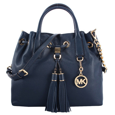 年終尾牙推薦-【MICHAEL KORS】Camden質感荔枝紋皮革流蘇兩用水桶包(午夜藍)-辦年貨推薦-momo購物網