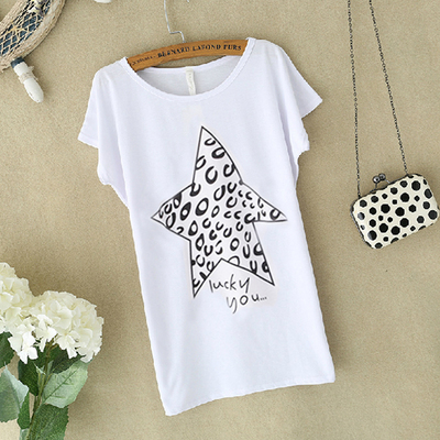 【Ulando】夏季新款蝙蝠袖白色印花棉質短袖T恤(A17)