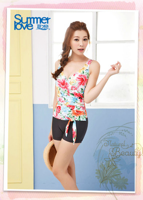 夏之戀SUMMER 熱帶印花連身四角泳衣-加大(3L)