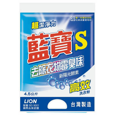 LION藍寶 S高效洗衣粉4.5kg(4入-箱)