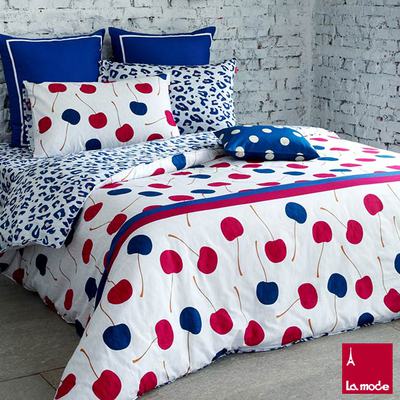 【La mode寢飾】迷幻櫻桃環保印染精梳棉兩用被床包組(雙人)