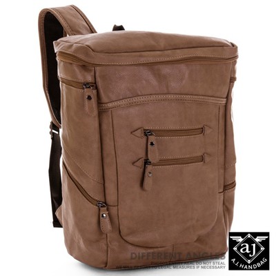 【A.J.亞介】韓風皮革後背包(卡其色)