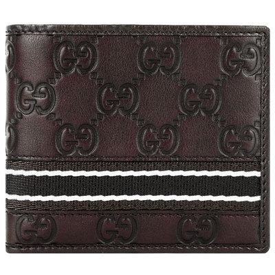 【GUCCI】Guccissima 織帶GG壓紋對折短夾(深咖-8卡-5折) 國際精品品牌有哪些
