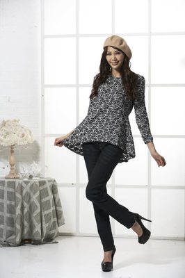 收到貨後,馬上穿 【AYH】時髦玫瑰花顯瘦上衣(黑搭灰) 去上班,
