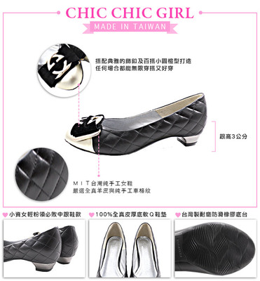 momo,momo購物台,momo購物網>【CHIC CHIC GIRL全真皮系列】小羊皮2.55菱格紋低跟鞋(黑) ★★★