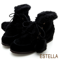 ESTELLA☆百變俏妞→全真皮暖呼呼毛球短靴(黑)