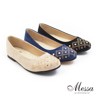 【Messa米莎日系】MIT低調奢華寶石水鑽裝飾內真皮平底包鞋(三色)