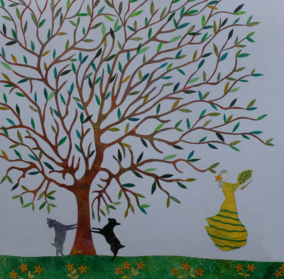 芳草萋萋 花團錦簇 戴花舞一回 天地同歡 小小羊兒 緊搭著樹幹 聞香起舞 追求嫩芽