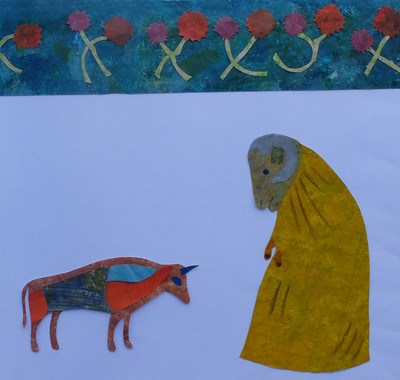 把人生滋味 藏入長袍 頂著牛角 看悲歡離合 大千世界 久久的靜默 把自己站成 行動藝術 吸睛潮流 只用一個眼神 就深深吸引 不喜競技場 廝殺勝負一隻 感性鬥牛 停駐對望 ...