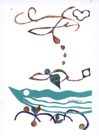 我看見一朵雲的淚,悄悄滴在一朵花上﹔我聽見時鐘滴滴答答,暗夜裡投入一條河的懷抱﹔我聽見你的呼吸和心跳,花啦啦奔向遼闊的大海﹔那些空中飄揚或地下流動的水的胚胎,時時刻刻都在滴響著,在每一個生命的纖細神經中。