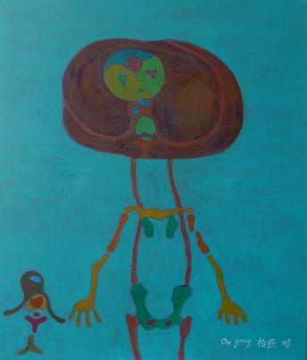 光底下搜尋越來越瘦的從前,回憶的點滴越積越多,偶人的頭越長越大,漸漸孵化出一個幼嬰,射出彩色玻璃一般的光彩,偶人沉沉發出一聲歎息,所有的骨頭都喀嚓、喀嚓回應。