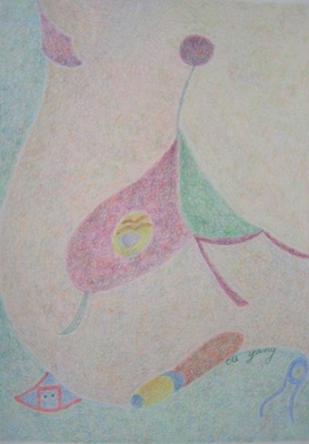 在連結雲影與天光的回憶之前,許多大大小小的水中生物,早先一步佔據生命之海,留下多變的天空,可以搭一座飛帳、拉著一枚氣球奔跑,那清晰的眼瞼既是天也是海,所有易懂或難解的符號都存在一張臉上、一個身體裡,漂浮無界限的大海。