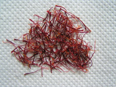 根據David傳給我的番紅花網站資料,我瞭解了它的真假辨別方法,也讀到一些美麗的花語。後來我又上網去看了一些資料,才知番紅花是全世界最貴的香料,一萬五千朵番紅花才能收集到一百公克的雌蕊柱頭。當我把番紅花泡在水中,漸漸散開蕊柱的花形時,那獨特的芳香也充滿室內,因為它是如此珍貴、又兼具多種醫療用途,所以美麗的花語一直為世人所歌頌,帶出了許多象徵意義。番紅花是經得起考驗的,不像人心,充滿投機險惡,連蘿蔔絲、玉米鬚都有投機者把它染成紅色來冒充番紅花。似乎人一旦走過純真的童年,便再也沒有香氣可言了。而番紅花,一直保有它的香氣,遺世獨立,也能融入西班牙海鮮燴飯裡,扮演無可取代的色與香角色,讓佳餚傳播得久久遠遠。