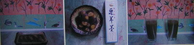 千羽的哥哥從法國來信說,他有好東西要給我們。我等啊等。在一個午後收到了一盒包裝精美的栗羊羹。這盒栗羊羹是他透過旅居日本的一位民俗學博士從日本帶回台灣的,他說他這輩子從沒吃過日本皇室指定的點心,要我們好好把握機會品嚐。