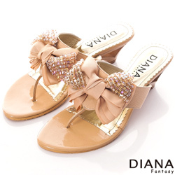DIANA萬種風情~亮麗蝴蝶結真皮涼跟鞋-卡其