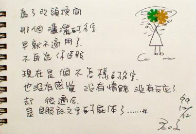 為了改頭換面 那個瀟灑的名字 早就不適用了 不再為你臣服 現在是個不怎樣的名字 也沒有感覺 沒有情緒 沒有反應了 卻 很適合 是臣服於文字的屍體了......#