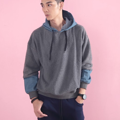 拼接牛仔QQ毛落肩帽T 29090 的產品介紹在下面,