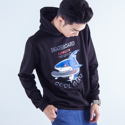 鯊魚咬滑板刷毛帽T(黑色) 296 的產品介紹在下面,