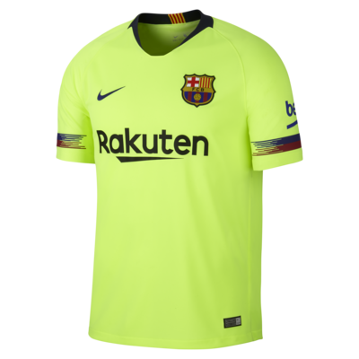 2018/19 FC Barcelona Stadium Away 男款足球球衣採用透氣排汗材質,無論場內或場外都能保持涼爽、乾燥及舒適。