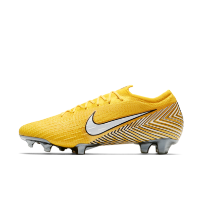 Nike Mercurial Vapor 360 Elite Neymar Jr 天然偏硬草地足球釘鞋採用 Flyknit 鞋面包覆雙足,打造完美貼合與出色觸球感。輕盈腳掌鞋盤,每一步均彈性高速。圖案致敬 Neymar 呈現的經典流暢、優美又充滿節奏感的巴西風打法。