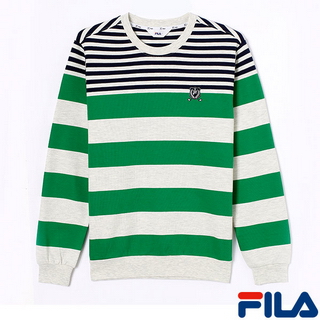 2015母親節必備 【FILA】男仕圓領條紋上衣(悠閒綠1TEN-5201-GN)