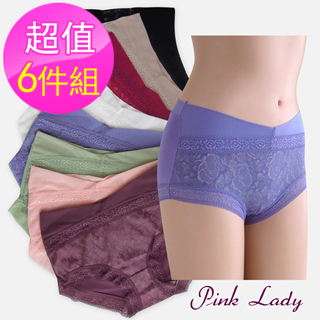 【PINK LADY】柔美蕾絲緹花 親膚蠶絲平口褲8016(6件組)