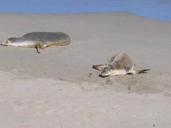 (圖中的動物﹐便是我在KANGAROO ISLAND所見的海豹(seal)﹐難得一見﹗﹗它們的生活很特別﹐每次出海便是三天了﹐回來後便睡覺休息﹐又是三天﹐即3~3 可愛得很)