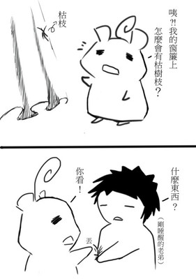哈哈哈!小孩實在很無聊地想畫個四格,順便練習想梗XD所以就把自己畫進去了~沒錯!那隻很奇怪的老鼠什麼的就代表是...