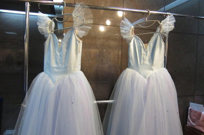 而我被分配看顧劇場提供的演出展示品--兩件芭蕾舞衣以及兩雙芭蕾舞鞋,