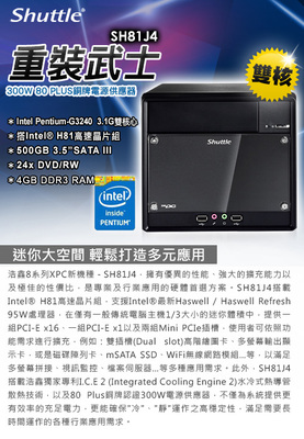 【浩鑫 Shuttle】Intel G系列 雙核(重裝武士)燒錄電腦迷你大空間 輕鬆打造多元應用支援Intel第四代處理器搭載Intel 8系列晶片組內建兩組Mini PCIe插槽支援4K/Ultra...