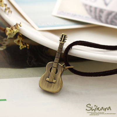 1121新品 清新節奏~吉他造型墜飾皮繩項鍊