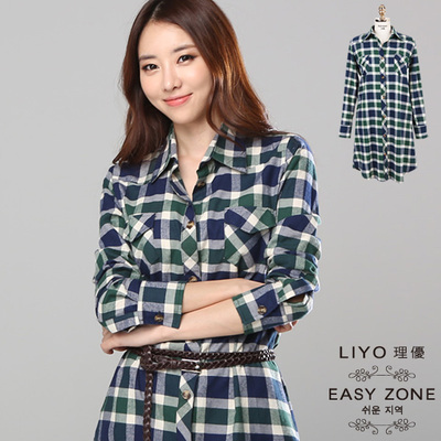【LIYO理優EASY ZONE】韓國經典格紋長版襯衫 3W5033