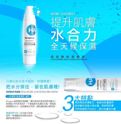 【Neogence 霓淨思】玻尿酸保濕精華1+1加贈組精純玻尿酸+天然海藻精華玻尿酸形成強力涵水層,長時間保天然保濕因子,提升肌膚水合力>>>瀏覽商品詳情瀏覽商品詳情瀏覽商品詳情
