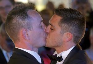 法國首對同志「夫妻」今公證 500人共同見證歷史 【15:41】〔本報訊〕同性戀合法婚姻在法國爭論已久,甚至引起多場大規模遊行抗議,導致嚴重警民衝突,不過同性戀婚姻法案仍除破重圍地於20日通過,今天早...
