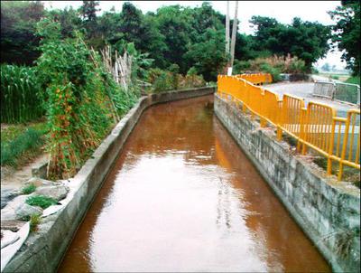 灌溉上千公頃農田的大肚圳被工廠排放廢水、變鐵鏽色。http://iservice.libertytimes.c...
