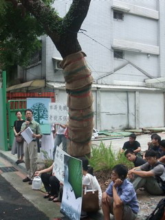 建商買下國有財產局台北市徐州路10號的土地,將要興建豪宅,建商2日要將建地前的一棵老樟樹斷根移植,綠黨等環保團體與十多名台大學生,到現場捍衛老樹。綠黨發言人潘翰聲表示,建商預計移走的老樟樹約有70多年的樹齡,非要移走是因為「豪宅住戶都開大車,老樹會擋住車子出入」,這理由令人難以接受。潘翰聲:『徐州路綠色隧道是市中心非常難得、生活品質很好的地方,但政府把這塊國有地標售出去後,建商的開發卻是要把綠色隧道的樹一棵棵的拔除,這不是只有一棵樹,而是整個徐州路綠色隧道的意義。』