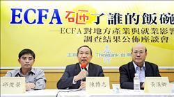 台灣智庫昨日召開記者會,要求政府對於因簽訂ECFA後,而被迫關廠、停產導致失業的勞工,除了提供原有的社會福利體系支持以外,還應對因此而顯著受益的企業課徵相關賦稅,專款專用輔導台灣勞工轉業。(記者叢昌瑾攝) 〔記者蘇永耀/台北報導〕馬政府急推兩岸簽署「經濟合作架構協議(ECFA)」,強調簽了ECFA,有助於台灣與他國簽定「自由貿易協定(FTA)」。曾任經建會主委的台灣智庫董事長陳博志昨日認為,如執意要簽,也應在我與美國及日本簽署FTA後,再同步生效。