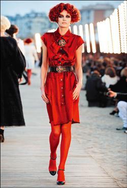 |  | | 高雄終年氣候暖和,洋裝是高雄貴婦較愛的款式,圖為2010早春茜草紅洋裝。 |  | | Chanel南台灣第一間珠寶腕錶專賣店跟著開幕,以金色與米色為基調與時尚精品店區隔。 |  | Chanel高雄漢神店外牆以經典香氛No.5香水包裝打造,高達16.4公尺。