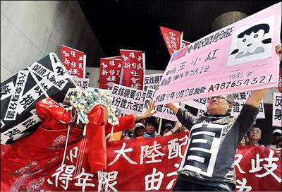 一群中國配偶昨天到立法院前表演行動劇陳情,要求取得身分證年限由6年縮短為4年;國民黨立委吳育仁表示,基於行政機關也有意縮短年限,應該朝人權方向合理邁進。