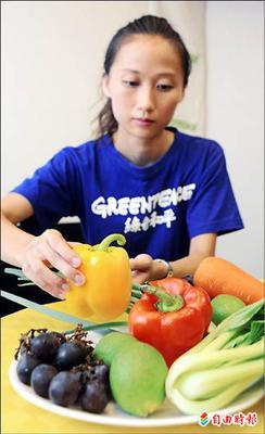 綠色和平組織農業專案主任蔡絲婷昨發布蔬果農藥檢測結果,有一件彩椒驗出十種不同農藥,其中一種農藥更超標達十倍。(記者劉信德攝)