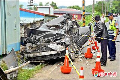 小客車幾乎成為一堆廢鐵。(記者楊宜中攝)