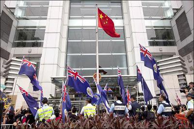 香港十一示威   港英旗圍中聯辦