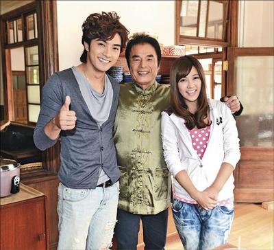 賀軍翔(左)和雷洪(中)戲裡演父子,戲外也培養出好感情,愛在片場互開玩笑。(八大提供)