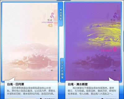新版中國護照包南海、包台灣,內頁還印上清水斷崖(圖右)及日月潭(圖左 )等圖片。(取自網路)