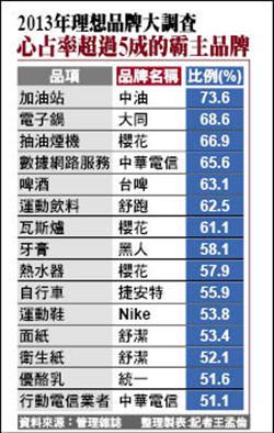 2013年理想品牌大調查 心占率超過5成的霸主品牌