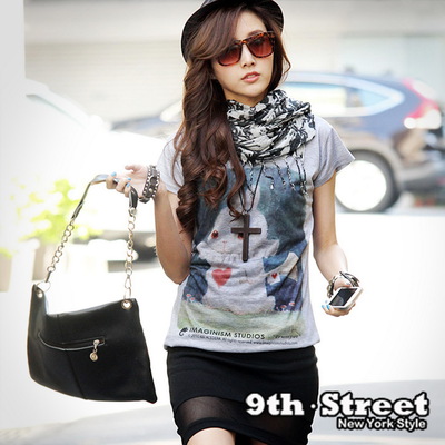 9th Street 簡約時尚-搗蛋兔個性長版上衣