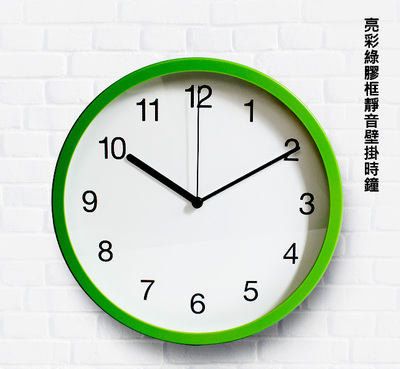 cp值超高的momo購物2【Lovel】25cm亮彩綠膠框靜音壁掛時鐘(P250-GN)-學英文