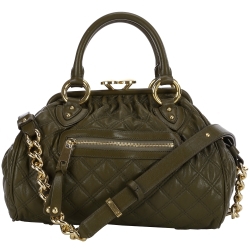 MARC JACOBS 小羊皮兩用Mini Stam Bag(墨綠色) 運用經典Quilting菱格紋搭配頂級小羊皮,搭配金屬混搭設計皮革鏈帶,