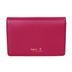 名片、票卡夾,商品款式,agnes b.,精品手錶、珠寶配飾,agnes b. 燙金logo素面皮革翻蓋名片夾(桃紅)